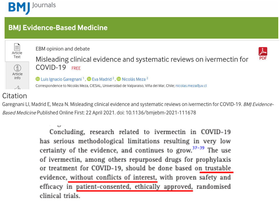 OK, Last one. The BMJ gets in on the action and proudly publishes this piece of crap editorial which spews every single anti-ivermectin narrative. My favorite is the cry for papers written by authors without “conflicts of interest.” Yup.