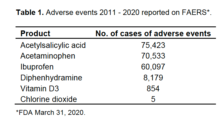 Now, despite the above, there have been 5 reports to the FDA Adverse Event Reporting System [FAERS] of adverse effects associated with the use of chlorine dioxide, and all 5 of these involved MMS.