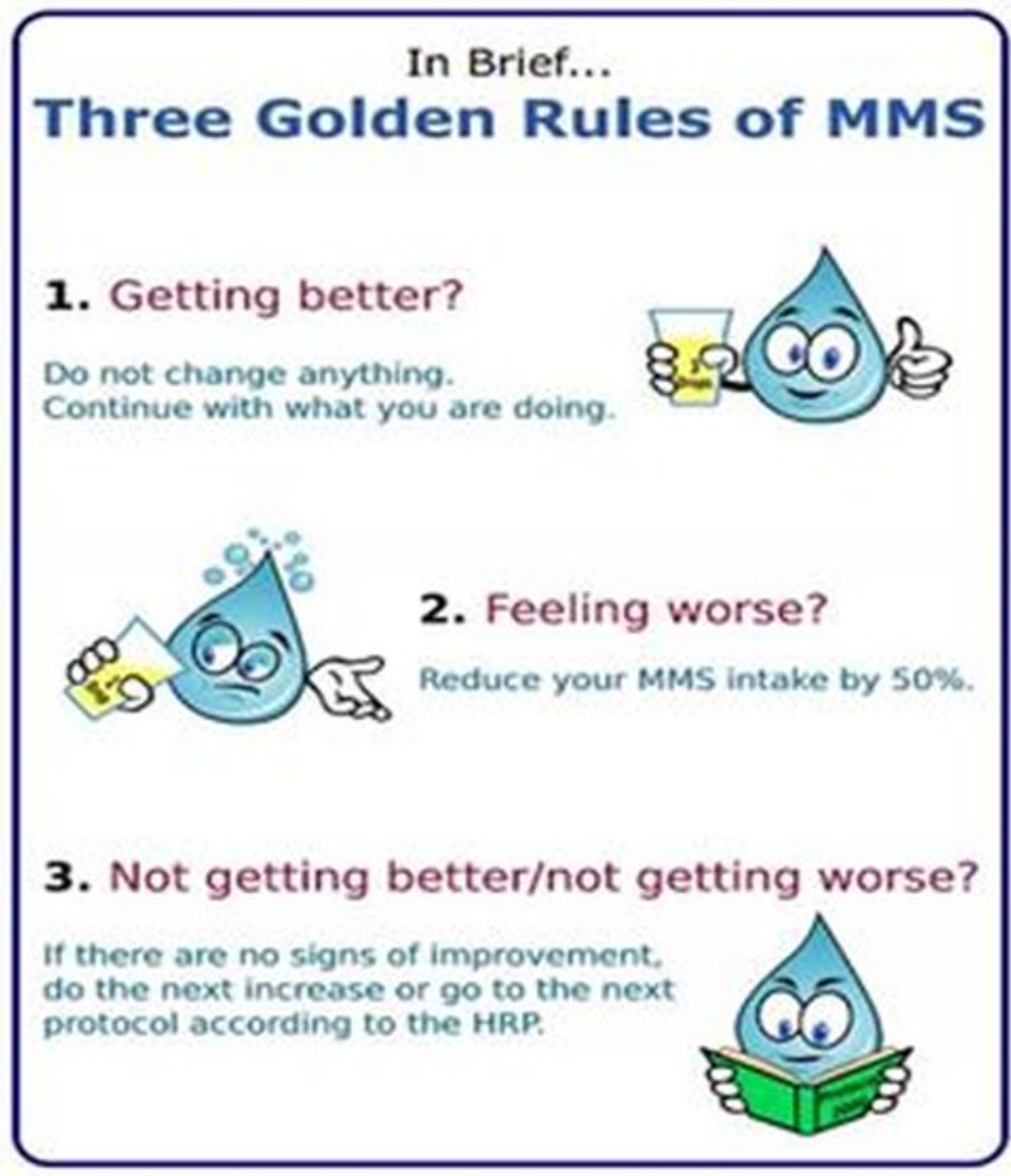 As a clinician however, I want to emphasize the unimportance of knowing the exact dose absorbed given that, as above, the dose ranges produced are far below levels producing adverse effects and, as long as a patient follows the “3 Golden Rules” of titrating MMS doses, the dose they arrive at will be safely tolerated and effective (as long as they prepare their MMS the same way with the same dropper each time).