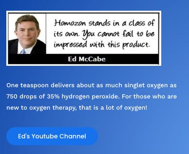 I then kept clicking links of Freibott and stumbled upon a link to a transcript of a lecture/interview Freibott did in 2011 where I hit the mother lode and found a fascinating description of not only Blass’s early career and accomplishments but also about the uniqueness and potency of Homozon, which, according to him, was far superior to even chlorine dioxide in one respect: delivering oxygen to cells.