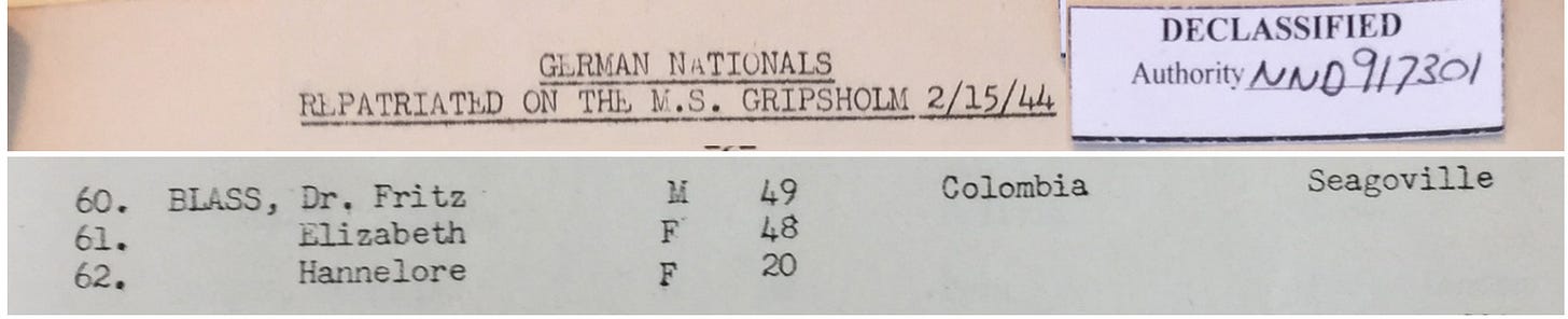 The other AI search result found Blass on a now declassified passenger list of a ship traveling to Lisbon, Portugal in 1944 which was repatriating Germans after World War II. So, he went back to Germany. Hmm.