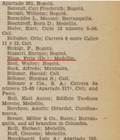 Using AI tools, I could find only two specific mentions him. One was from “The Federal Register” below where he was listed with other names as residing in Medellin, Columbia in 1942.