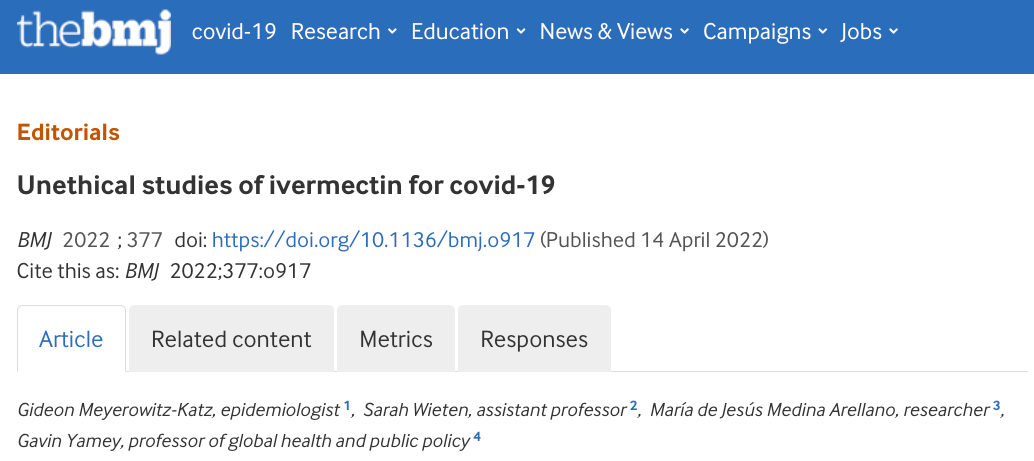 APRIL 2021- THE BRITISH MEDICAL JOURNAL AND THE NEW ENGLAND JOURNAL OF MEDICINE PUBLISH NEGATIVE PROPAGANDA AGAINST IVERMECTIN
