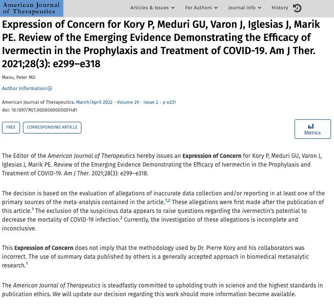 However, instead of retracting our paper once again, the Editor smartly and fairly chose to publish “An Expression of Concern” in regards to our paper. Interestingly, in the letter, he actually defended us. One of the few bright spots in the war on ivermectin. Here it is: