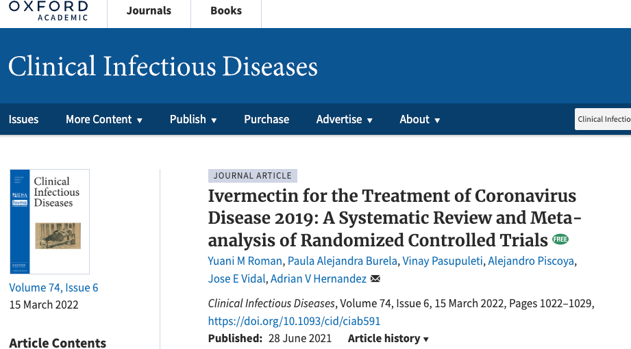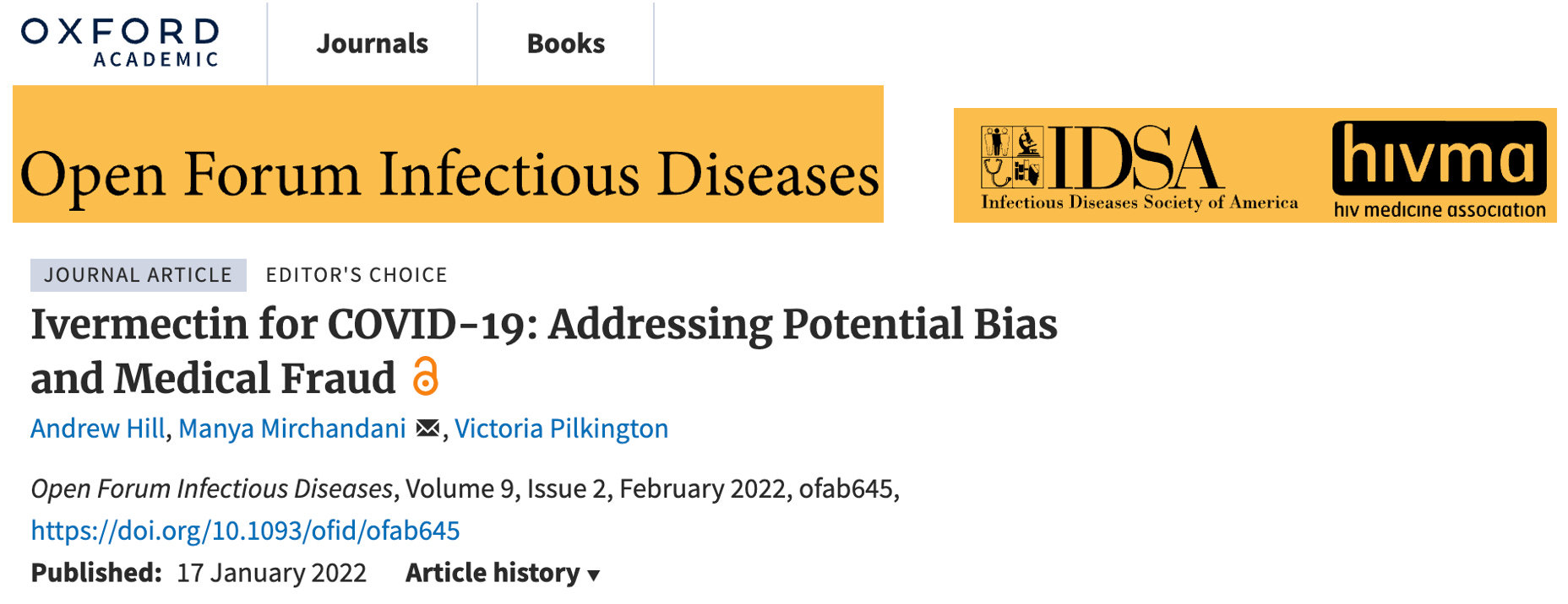 In the wake of the publication of Hill’s paper, the war on ivermectin was at a critical, if not the most critical juncture to date. Pharma was actually in trouble here. In one of the most highly regarded infectious disease journals in the world, a massively positive meta-analysis supporting ivermectin’s efficacy was published. Based on 24 RCT’s (what drug in history ever had 24 RCT’s conducted before being adopted?). Answer: none. Heck, in cases where a drug doesn’t work, they stop doing RCT’s way before 24).