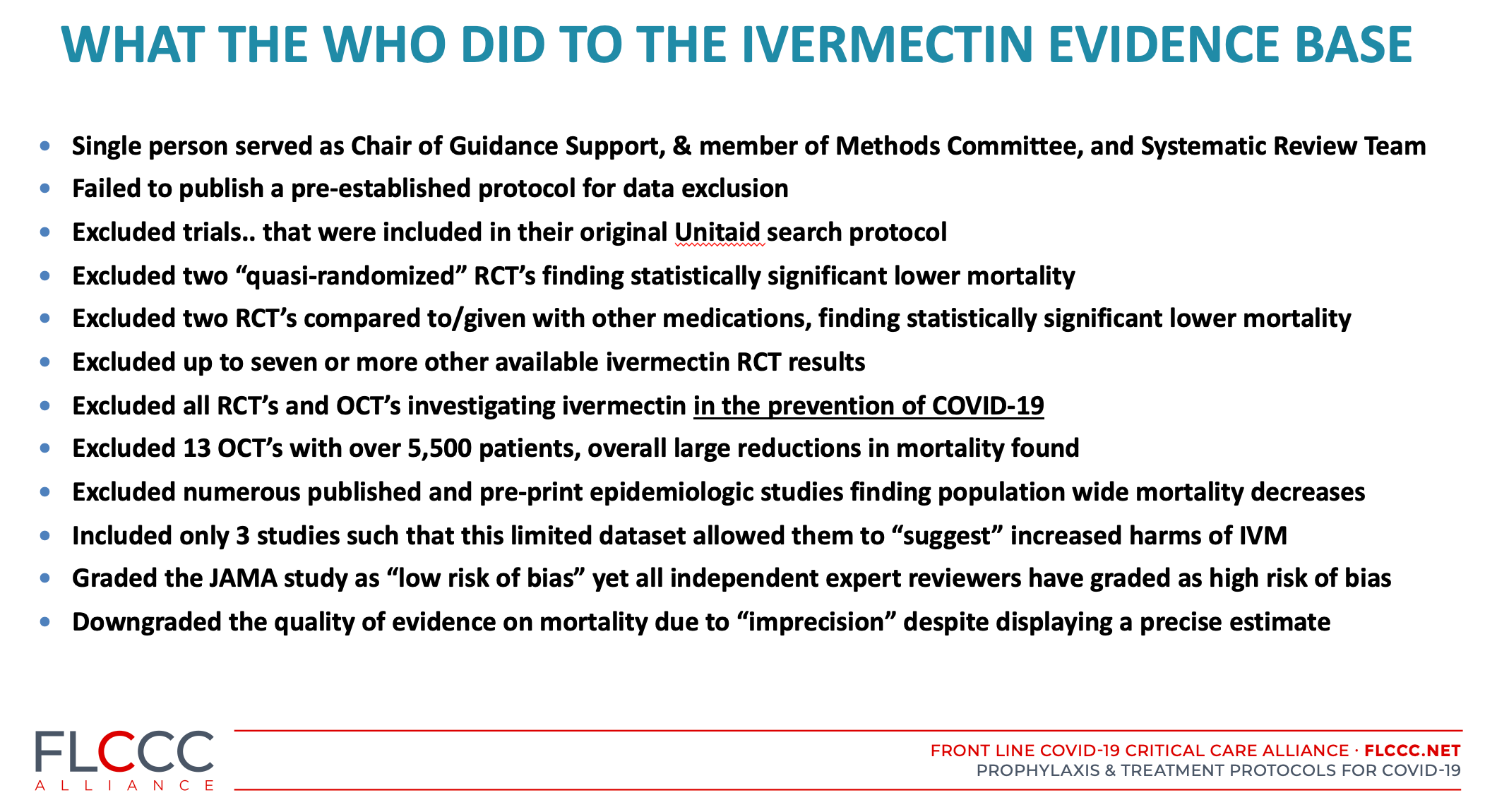 On the same day as the WHO Guideline publication, the FLCCC sent out a press release trying to alert the world to this massive corruption of the science supporting ivermectin. Link is here and below.