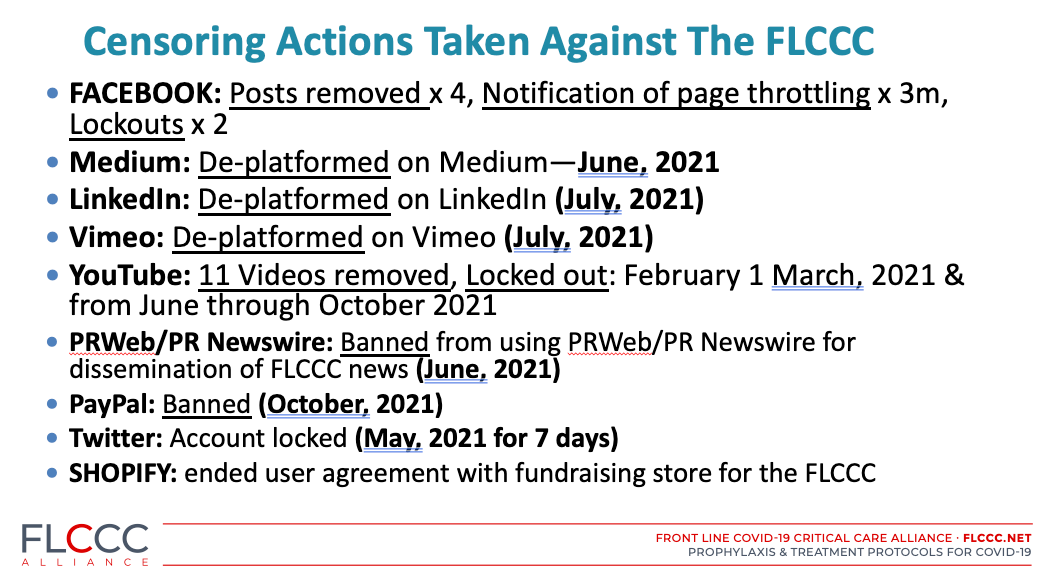 A brief and highly incomplete summary of actions taken against the FLCCC are here: