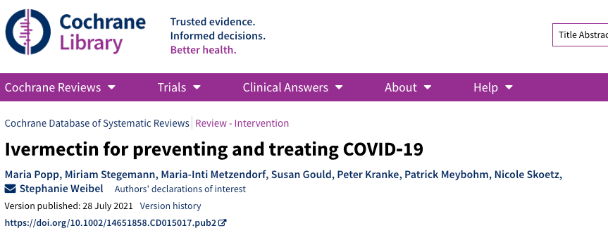 JULY 2021 - THE FIRST FRAUDULENT META-ANALYSIS IS PUBLISHED IN THE TOP META-ANALYSIS JOURNAL IN THE WORLD - THE COCHRANE LIBRARY