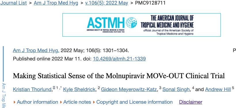 The paper rightly attacks the Molnupiravir trial, err, I mean fraud. This paper may be the only one they are associated with that I agree with. But you just have to remember that.. Molnupiravir is the direct competitor of Pfizer’s Paxlovid. And guys like Thorlund, the lead author, was a major player in the TOGETHER trial fraud and is also a Vice President of the contract research organization Cytel which does a lot of work for Pfizer. Probably just a coincidence really.