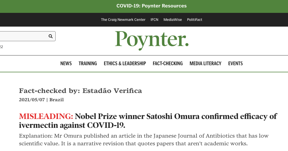 His paper was countered with outrageous anti-ivermectin narratives like this example on the Poynter website (among others). Keep in mind they are referring to the expert recommendations of a Nobel Prize winner in Medicine.
