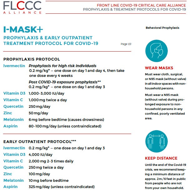 In the weeks after Paul’s YouTube lecture, while I was working on the paper, our first early treatment protocol was created, the initial dosing was super cautious as we were just learning about ivermectin and multi-day dosing was novel (we quickly and continuously increased dosing and/or frequency and duration many times according to the severity and viral loads of the subsequent variants (while all the “high quality” Big Pharma/NIH trials did the opposite). Here is one of the earliest versions (a lot has changed on this protocol so do not use - our most updated version is here).