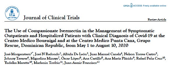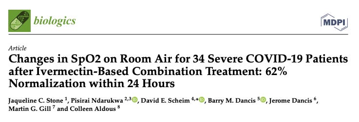 During the early spring 2020 surge of Covid in the Dominican Republic, a doctor at one of the larger private clinic systems gave ivermectin to an overweight, diabetic tourist who was deteriorating in the hospital with progressive hypoxia within hours of admission. Within 12 hours of receiving ivermectin he demonstrated a rapid and robust improvement in his oxygenation (as was later told to me by the 2nd author of the paper, Dr. Jose Redondo, who I met a year later on vacation in the DR). Note that a paper detailing both the physiologic mechanisms and clinical examples of rapid reversal of hypoxia after ivermectin treatment was recently published by some close colleagues of mine. Bravo I say.