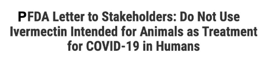 “PFDA is concerned about the health of consumers who may self-medicate by taking ivermectin products intended for animals, thinking they can be a substitute for ivermectin intended for humans … Please help us protect public health by alerting FDA of anyone claiming to have a product to prevent or cure COVID-19 and to help safeguard human and animal health by reporting any of these products.”