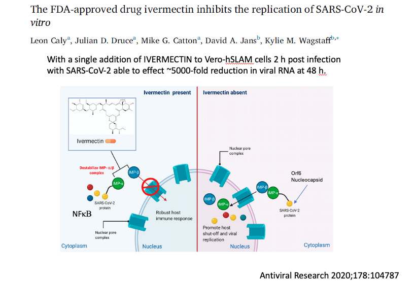 Ivermectin first exploded on the scene as a potential therapeutic in Covid after Leon Caly, Kylie Wagstaff et al from Monash University in Australia published their in-vitro study showing that SARS-CoV2 essentially disappeared from a cell culture within 48 hours of being exposed to ivermectin.
