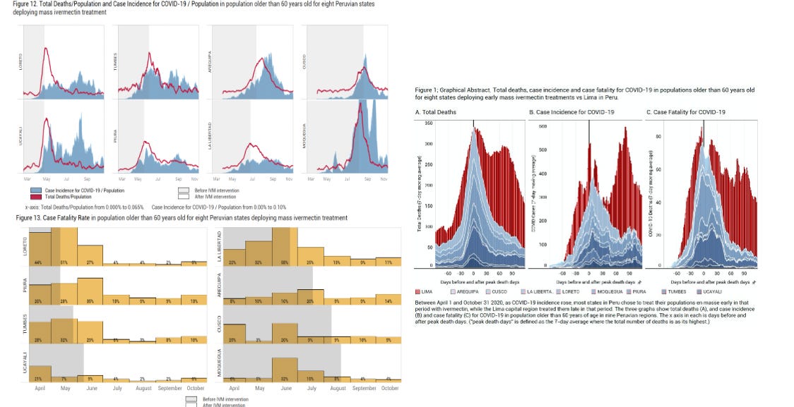 Juan Chamie et al’s paper on Peru’s Operation Tayta, to me, represents the earliest and most compelling evidence of the impacts of widespread ivermectin distribution. Had his paper been recognized and applied by public health agencies across the world.. the pandemic would have been over and quick. The graphs of plummeting deaths and case fatality rates beginning on average 11 days after the various different times of ivermectin distribution in those regions were insanely convincing.