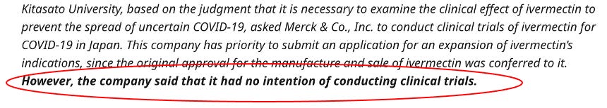So Merck refused to study ivermectin from the get-go. This was the first tell of what was to come. Remember, Pharma creates profitable customers, not cures. Remember that. They refused to support a Nobel Prize winner that they formerly partnered with. That Nobel prize winner was interested in researching ivermectin’s efficacy during the first global surge of the pandemic with hundreds of thousands dying with no effective early treatment agent having yet been identified (besides HCQ).