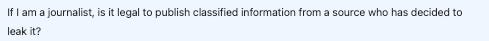 Answer: The legality of publishing classified information varies significantly depending on the country and its specific laws. Here are some general considerations: