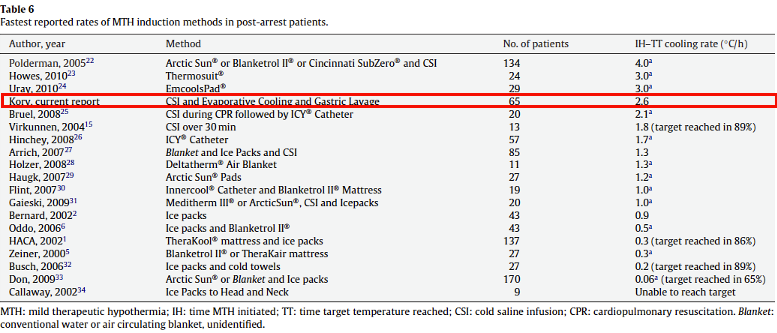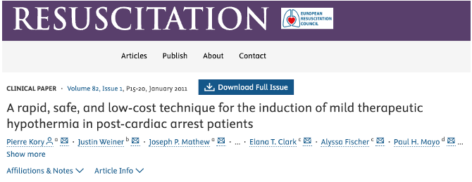 They would instill 500ml and then suck it out, then refill with iced saline, repeat. Using this “combination therapy” protocol, we achieved some of the fastest decreases in body temperature of any method known. Below is my paper shouting to the ICU world about how the fastest (and dumbest) way to cool a patient was: