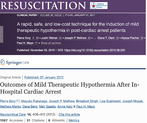 However, what I am most proud of from that time was helping pioneer two different, then novel fields of my specialty - the first was on the study and application of therapeutic hypothermia in post-cardiac arrest patients, and the other was in creating and teaching a novel diagnostic approach to critical illness using “point-of-care ultrasonography.” Today, I will share with you my introduction to and experiences with the therapy that was then called “Mild Therapeutic Hypothermia” (now it is called “Targeted Temperature Management”).