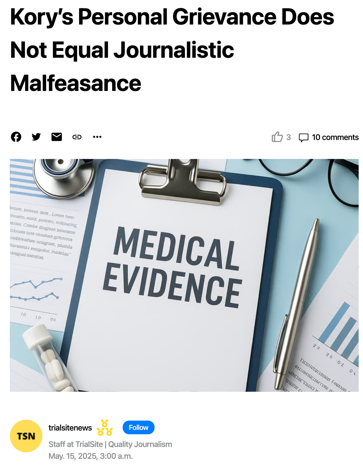 It seems that no authority or corporation can ever publicly admit they got something wrong. The lack of institutional humility is astonishing to me, but it is what it is. OK, now let’s address the arguments laid forth in Trial Site News’ latest “doubling down.”