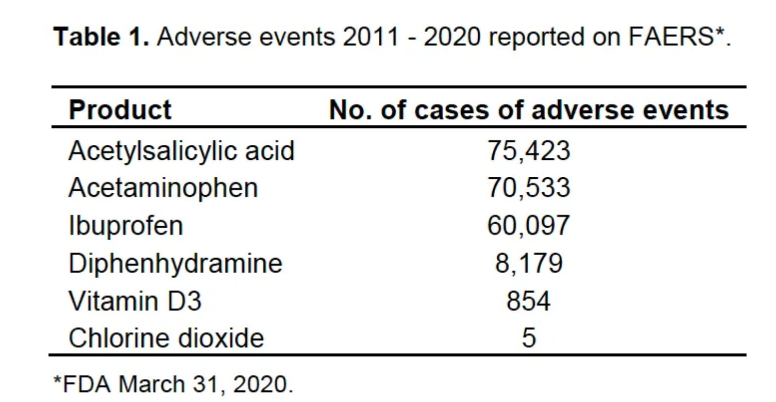 Also note this Table, compiled from the FDA Adverse Event Reporting System (FAERS), which suggests higher safety compared to aspirin, Tylenol, ibuprofen, Benadryl, etc.