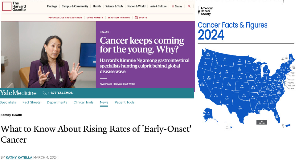 Many have been noticing new cancer diagnoses amongst their friends and relatives, with the majority occurring amongst people younger than is typical for cancer. Further, the cancers appear more aggressive given reports of death within just a few short months (or even weeks) after diagnosis.