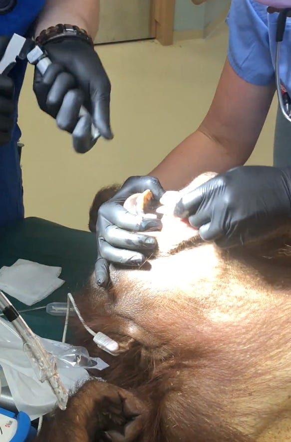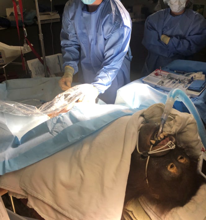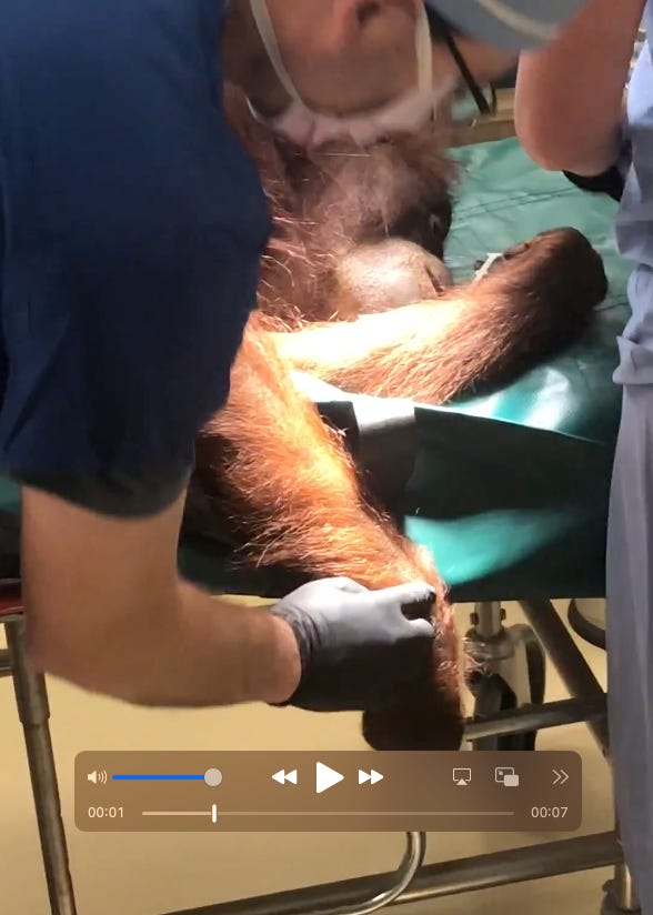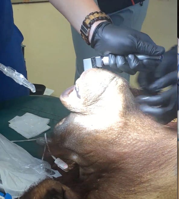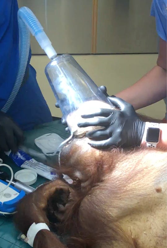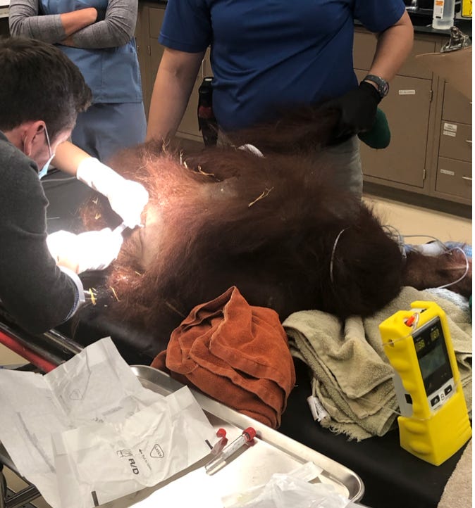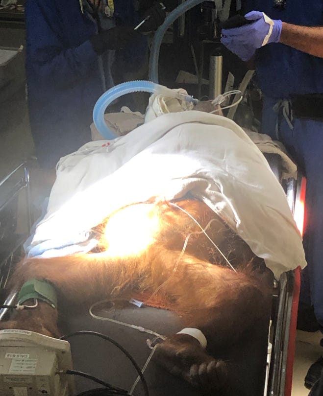 As tired as I was on that morning, I immediately jumped up, as the opportunity to be involved with caring for a critically ill orangutan was beyond exhilarating to me. Let alone the fact that my Hippocratic oath dictated that I help anyone in medical need when asked (not sure if the Hippocratic oath mentioned orangutans, but you get it).