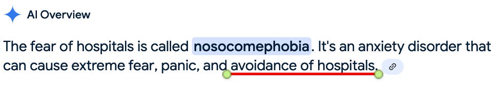 Also know that the condition of fearing hospitals has a medical dictionary definition. From Google: