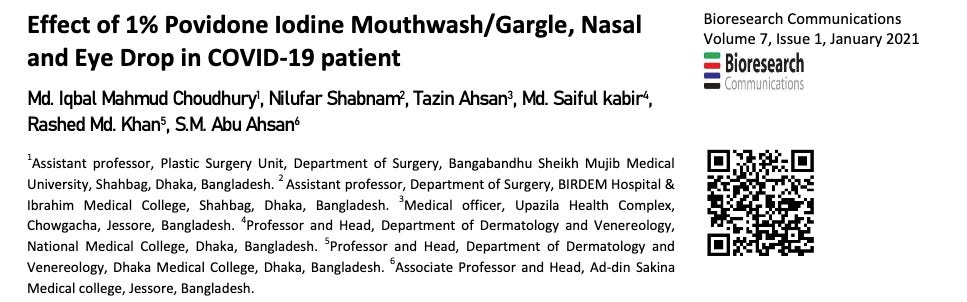 If you think I am making this diagnosis up, sadly I am not given that it has been described in peer-reviewed literature, such as this early Covid study below from Bangladesh where they treated Covid-19 patients at home with povidone-iodine (one of the mainstays of the old FLCCC’s early treatment protocol). In that study, they found massively reduced hospitalization rates (0.66% vs. 4.62%, p<.05,) and mortality (0.66% vs 5.61%, p<.05):
