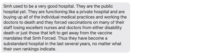 What made my post-Covid hospital phobia even worse is that I moved to Sarasota, Florida two months ago. Here, the main hospital is Sarasota Memorial, one of the most egregious institutions in regards to the above behaviors. Way before I moved here, I was asked to help advocate for a group of medical freedom activists in the Sarasota community who were so angered by the behavior of this hospital, they tried to gain a majority on the hospital Board, and although as yet unsuccessful, the Board meetings made national news due to their contentiousness.